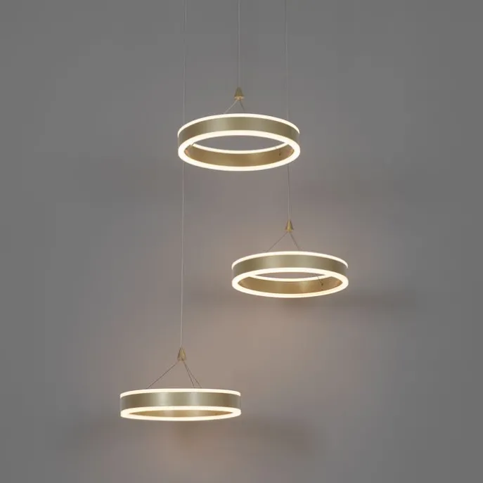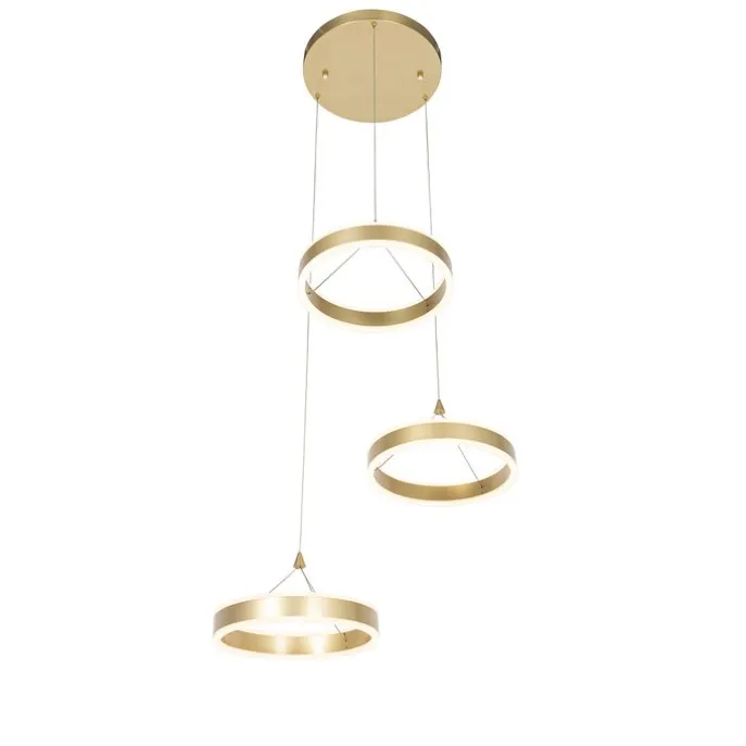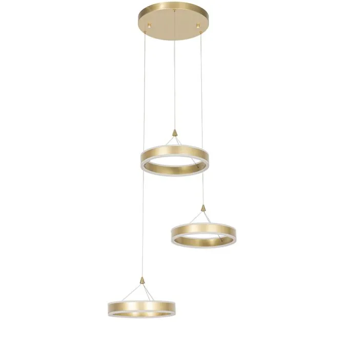 Hanglamp messing rond incl. LED 3-staps dimbaar 3-lichts – Lyani