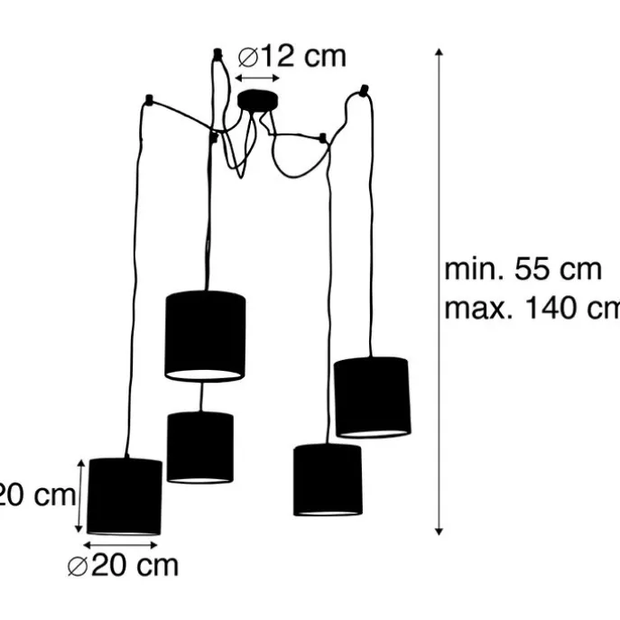 Hanglamp met 5 gekleurde velours kappen 20 cm – Cava