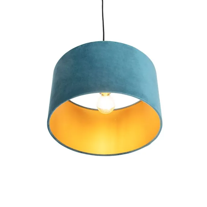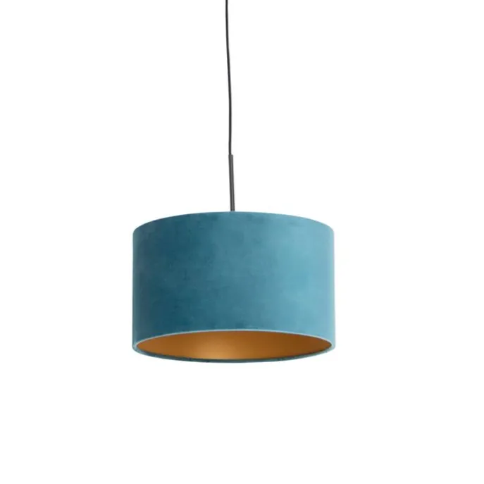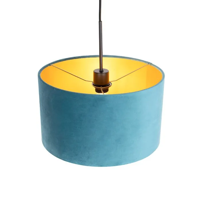 Hanglamp met velours kap blauw met goud 35 cm – Combi