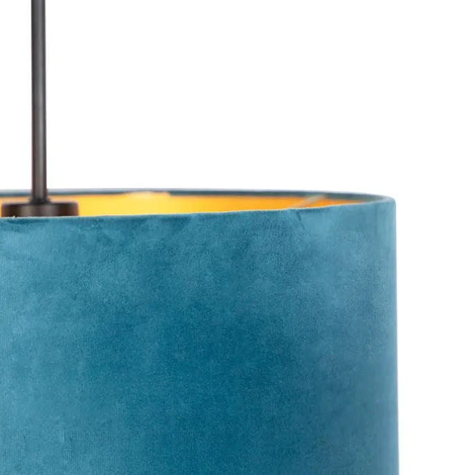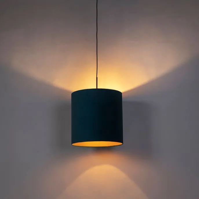 Hanglamp met velours kap blauw met goud 40 cm – Combi