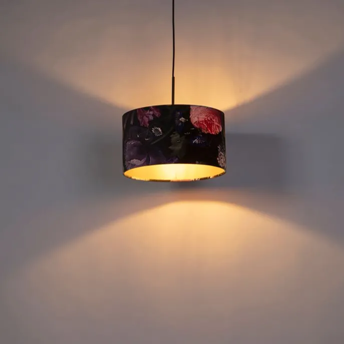 Hanglamp met velours kap bloemen met goud 35 cm – Combi