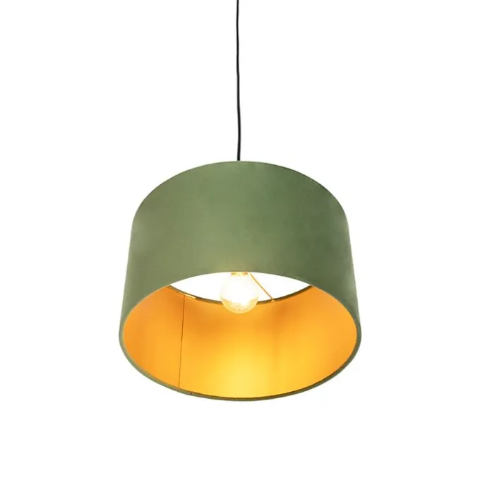 Hanglamp met velours kap groen met goud 35 cm – Combi