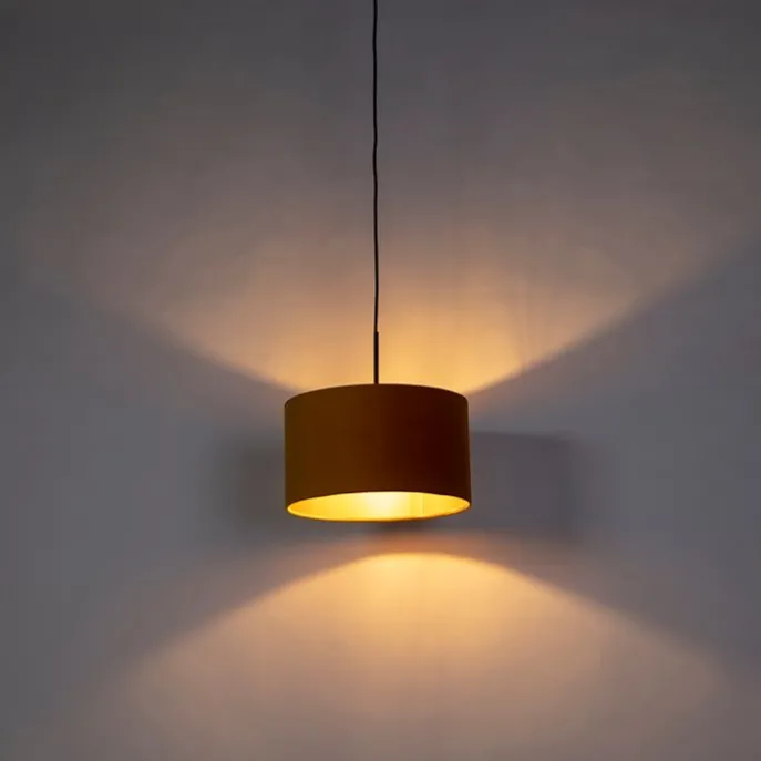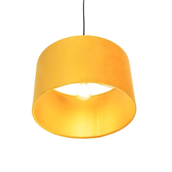 Hanglamp met velours kap oker met goud 35 cm – Combi