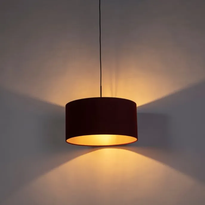 Hanglamp met velours kap rood met goud 50 cm – Combi