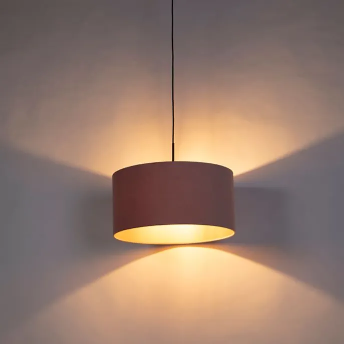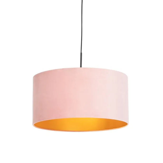 Hanglamp met velours kap roze met goud 50 cm – Combi