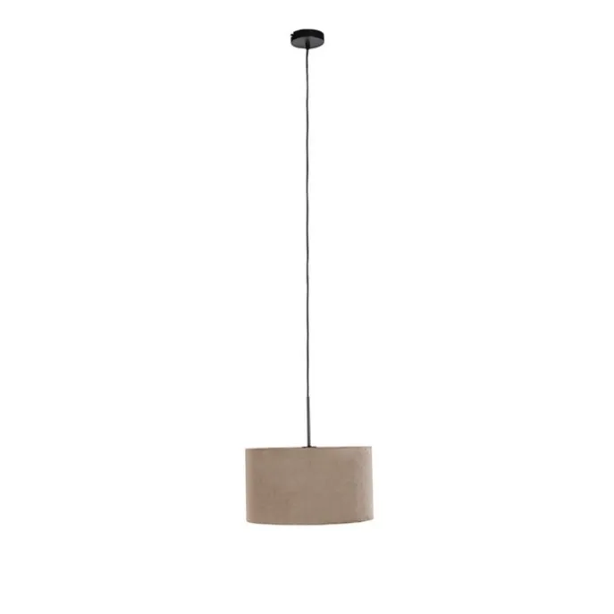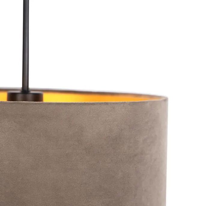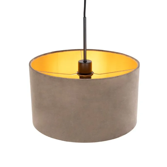 Hanglamp met velours kap taupe met goud 35 cm – Combi