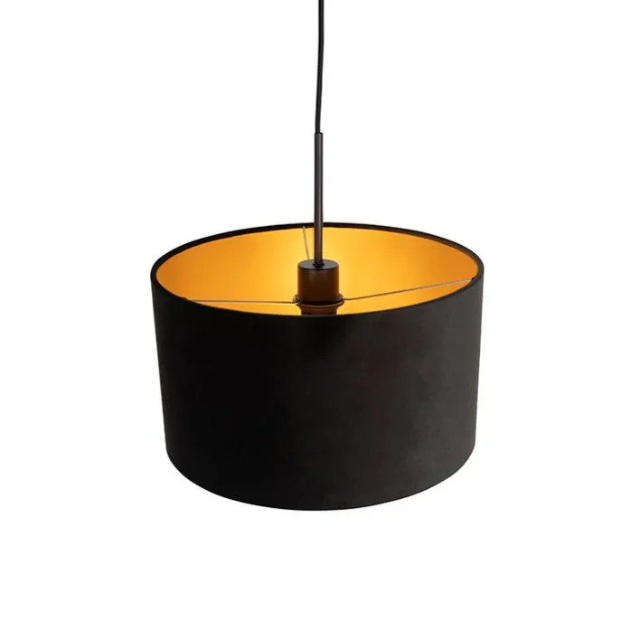 Hanglamp met velours kap zwart met goud 35 cm – Combi