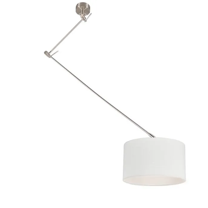 Hanglamp staal met kap 35 cm wit verstelbaar – Blitz