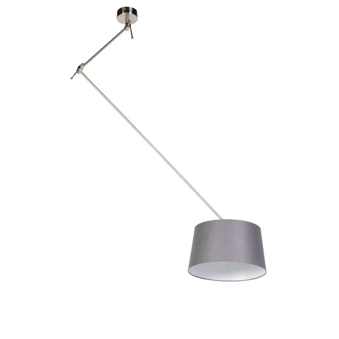 Hanglamp staal met linnen kap donkergrijs 35 cm – Blitz