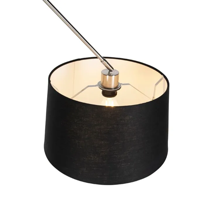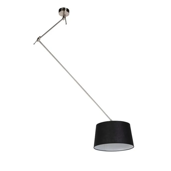 Hanglamp staal met linnen kap zwart 35 cm – Blitz