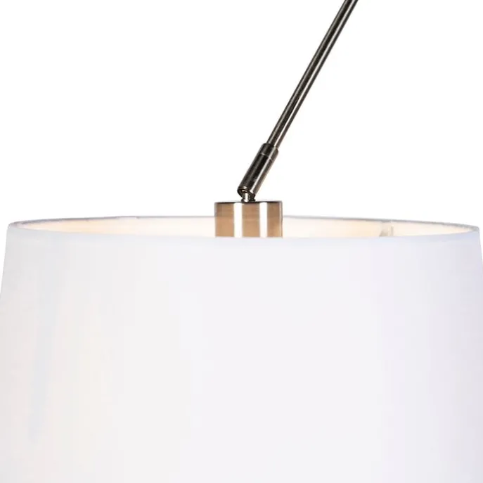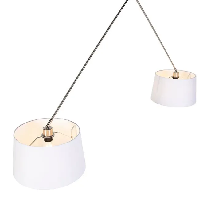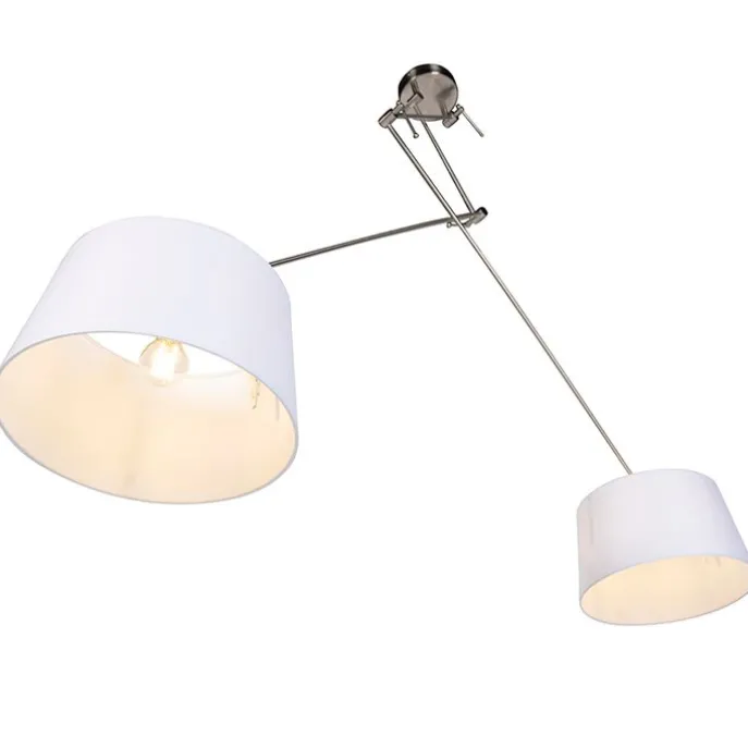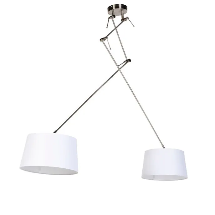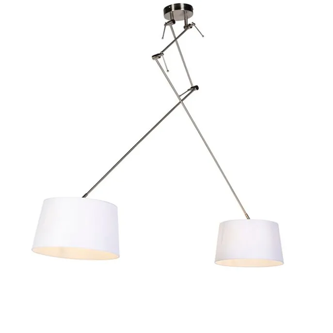 Hanglamp staal met linnen kappen wit 35 cm 2-lichts – Blitz
