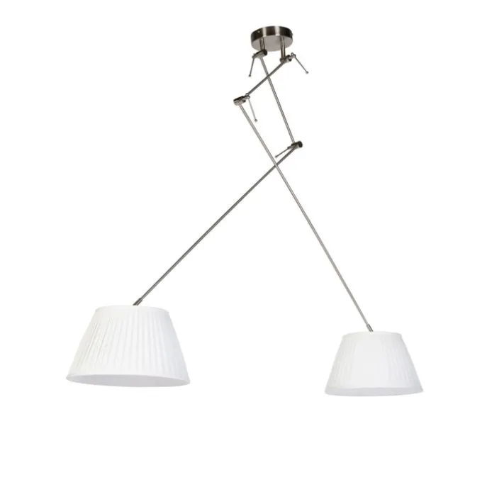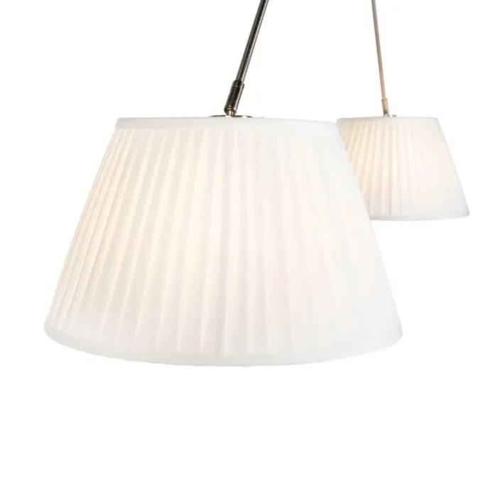 Hanglamp staal met plisse kappen crème 35 cm 2-lichts – Blitz