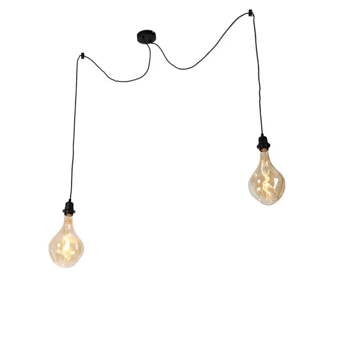 Hanglamp zwart 2-lichts incl. LED goud dimbaar – Cava Luxe