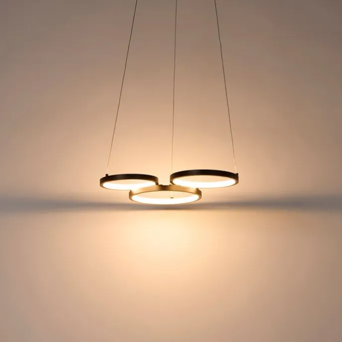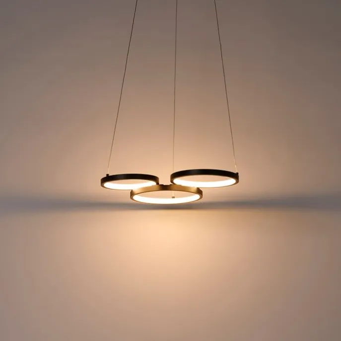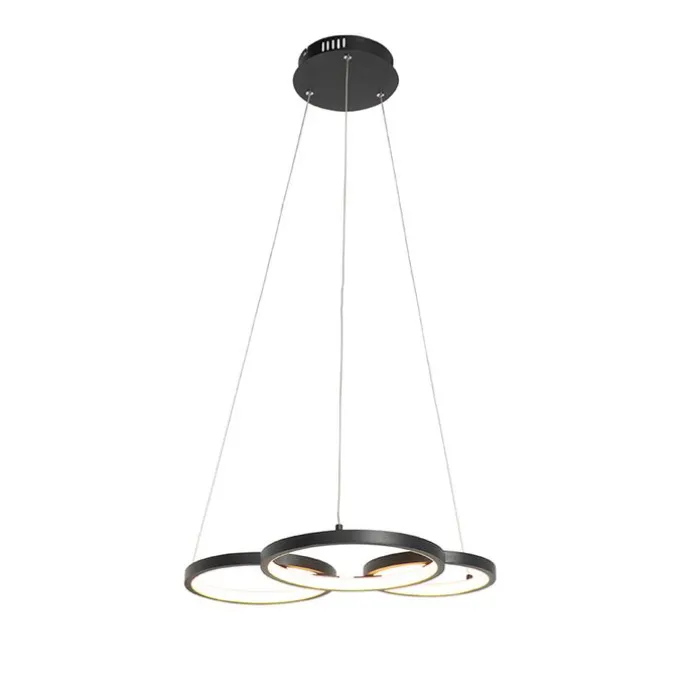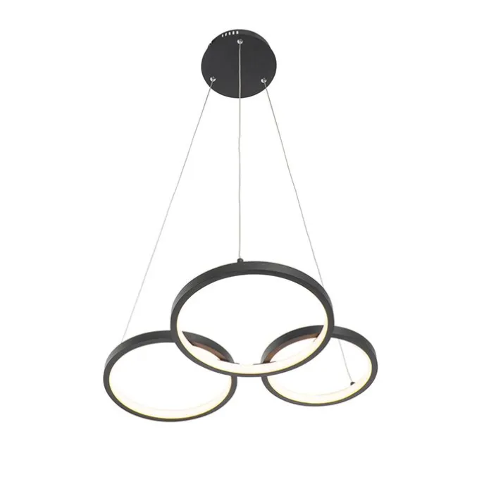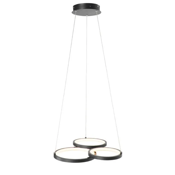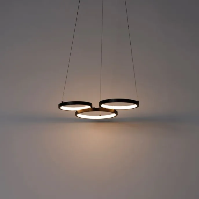 Hanglamp zwart incl. LED 3-staps dimbaar 3-lichts – Rondas
