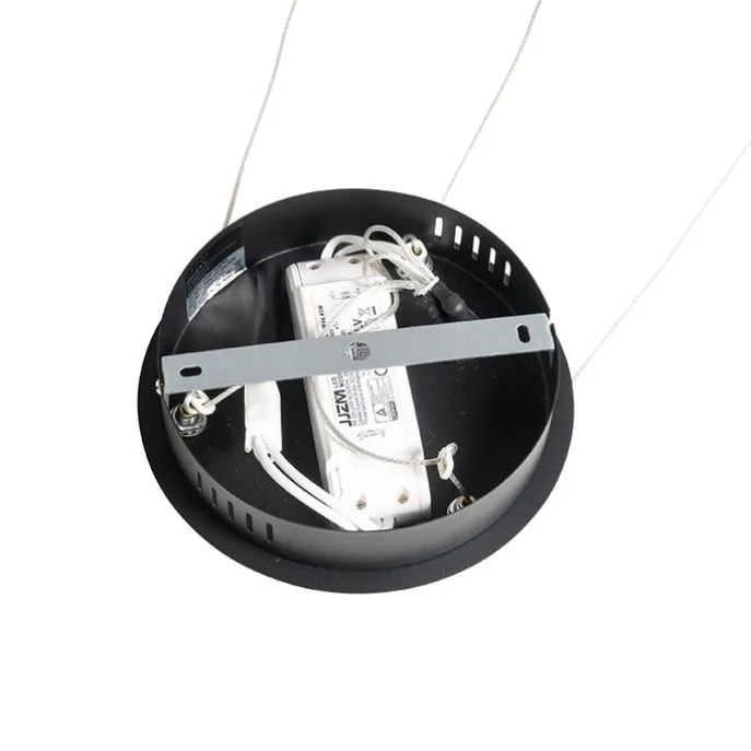 Moderne hanglamp Rondas zorgt met haar 3 lichtcirkels voor een prachtig lichteffect in de ruimte. De hanglamp is gemaakt van kunststof met aluminium en staal. Zijn zwarte kleur maakt hem erg tijdloos. Rondas heeft een lengte van 52 cm, breedte van 43 cm en is verstelbaar in hoogte; minimaal 36 cm en maximaal 160 cm. De montageplaat heeft een diameter van 22 cm en een hoogte van 4 cm. Het snoer heeft een lengte van 150 cm. De cirkels beschikken over niet-vervangbare LED verlichting met een lichtvermogen van 1260 lumen en 2700 Kelvin. Daarmee is de hanglamp een echte krachtpatser en geeft hij veel licht! Met de 3-staps dimmer is het licht dimbaar, dit doe je eenvoudig met je eigen schakelaar aan de muur. De hanglamp past perfect op kantoor of boven de eettafel. Geef jouw interieur een moderne twist met Rondas!