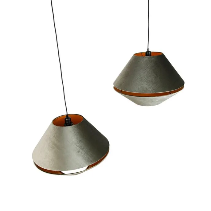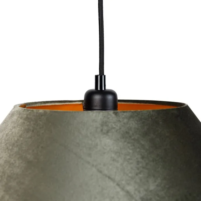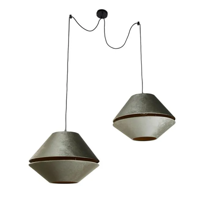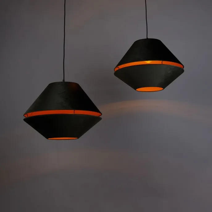 Hanglamp zwart met dubbele velours lampenkap groen met gouden binnenkant 2-lichts – Cava Luxe