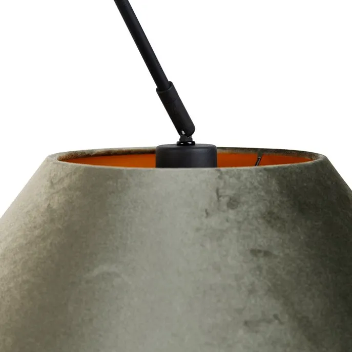 Hanglamp zwart met dubbele velours lampenkap groen met gouden binnenkant – Blitz