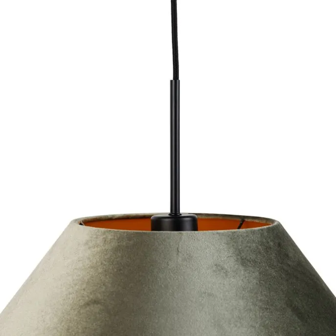 Hanglamp zwart met dubbele velours lampenkap groen met gouden binnenkant – Combi 1