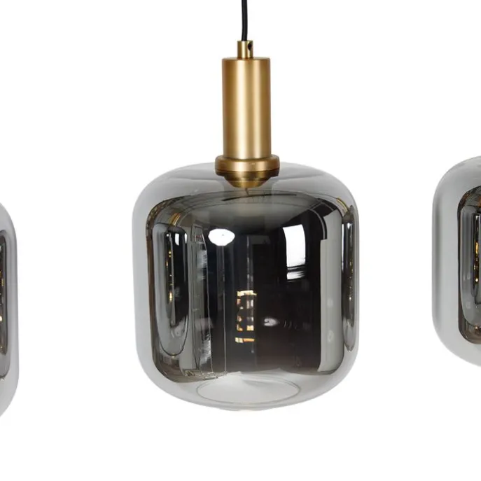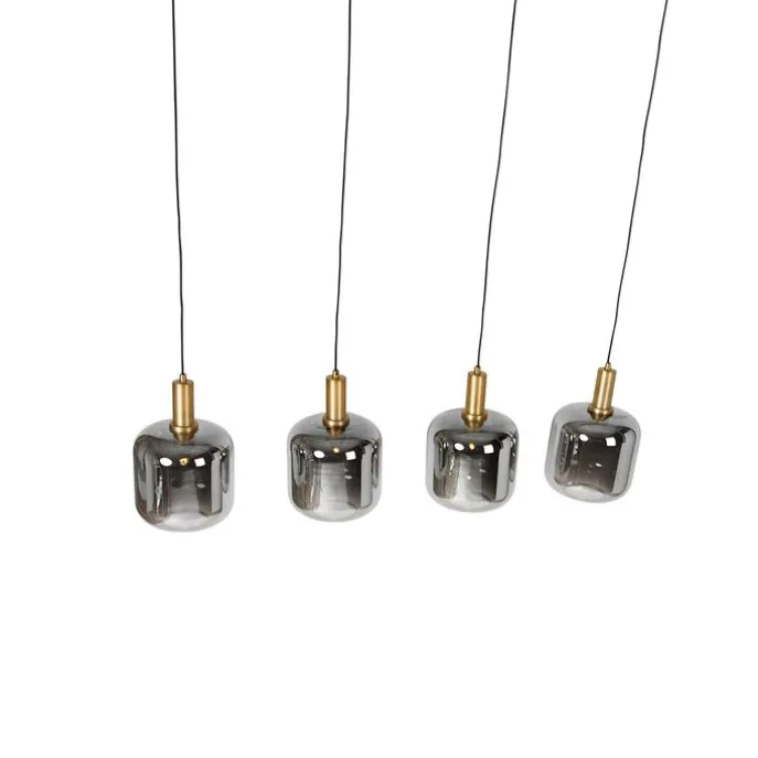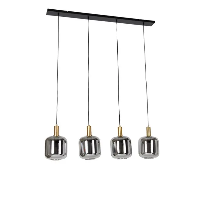 Hanglamp zwart met goud en smoke glas incl. 4 PUCC – Zuzanna