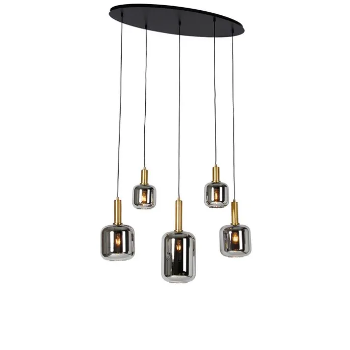 Hanglamp zwart met goud en smoke glas ovaal 5-lichts – Zuzanna