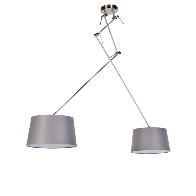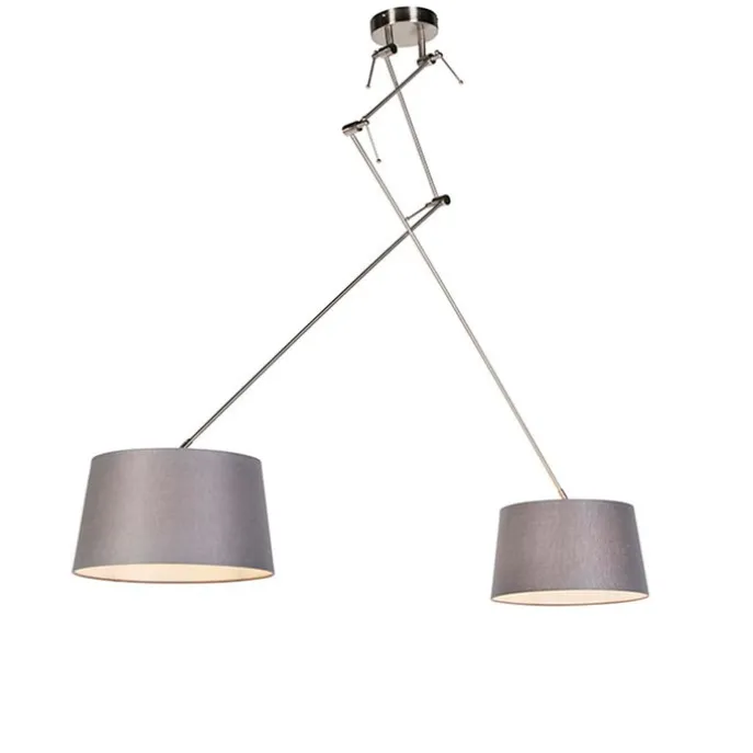 Hanglamp zwart met linnen kappen donkergrijs 35 cm 2-lichts – Blitz