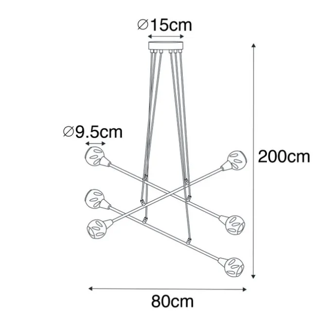 De perfecte balans tussen subtiel en stoer! De afwerking in smoke glas zorgt voor een mooi lichteffect in de ruimte. Deze hanglamp is gemaakt van staal met glas en afgewerkt in het goud met zwart. Hij heeft een diameter van 80 cm en een hoogte van 200 cm. De montageplaat heeft een diameter van 15 cm en een hoogte van 3,5 cm. De glazen bollen hebben ieder een diameter van 9,5 cm. Maak de lamp compleet met zes E14 lichtbronnen, vergeet deze er niet los bij te bestellen. Je kan het extra gezellig maken in huis met een externe dimmer, deze lamp is namelijk dimbaar. Haal een stijlvolle hanglamp in huis met onze Vidro.