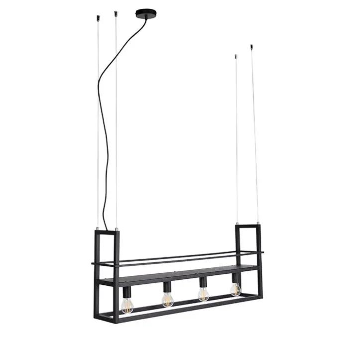 Hanglamp zwart met rek 4-lichts – Cage Rack