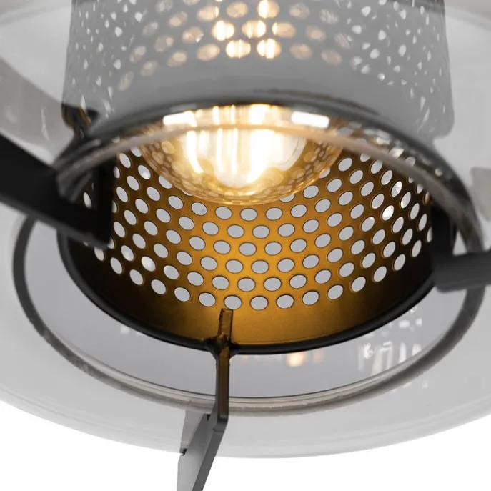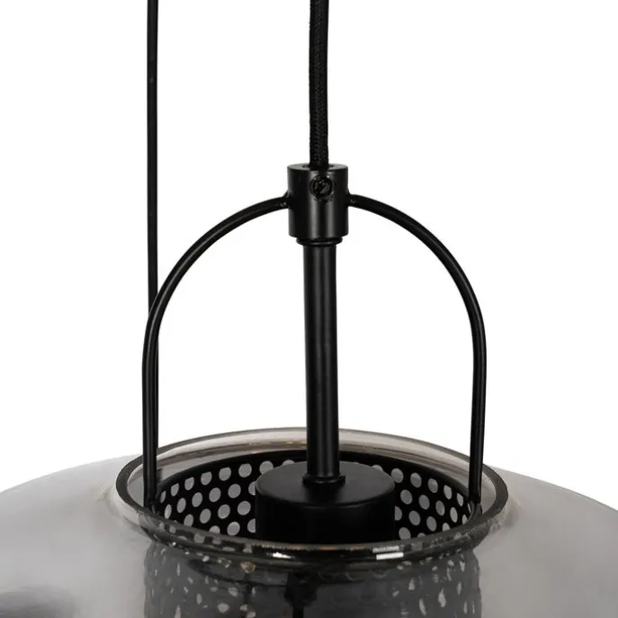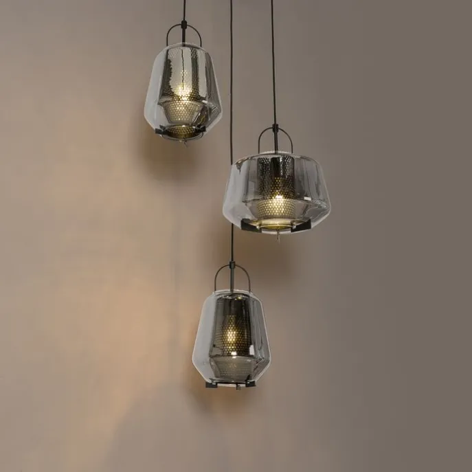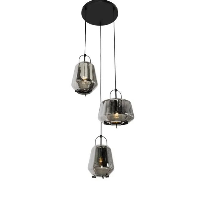 Hanglamp zwart met smoke glas rond 3-lichts – Kevin