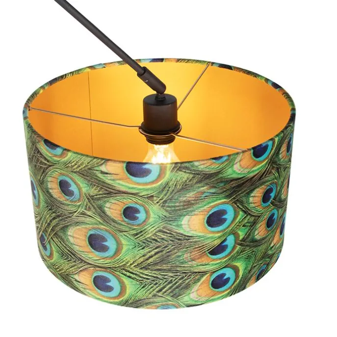 Hanglamp zwart met velours kap pauw met goud 35 cm – Blitz
