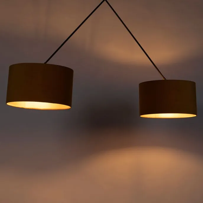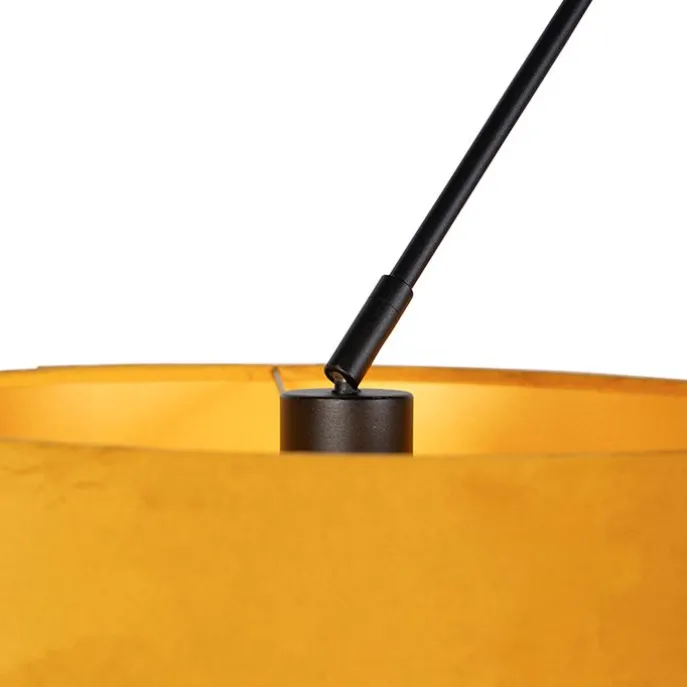 Hanglamp zwart met velours kappen oker met goud 35 cm – Blitz