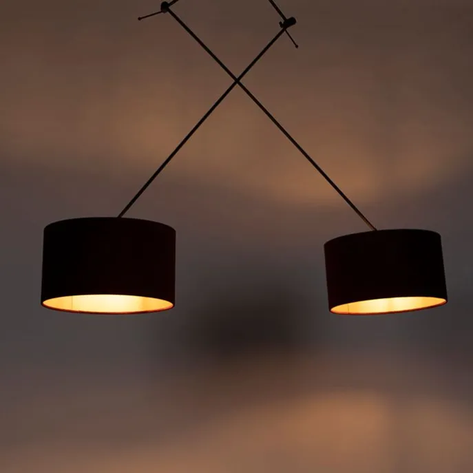 Hanglamp zwart met velours kappen rood met goud 35 cm 2-lichts – Blitz