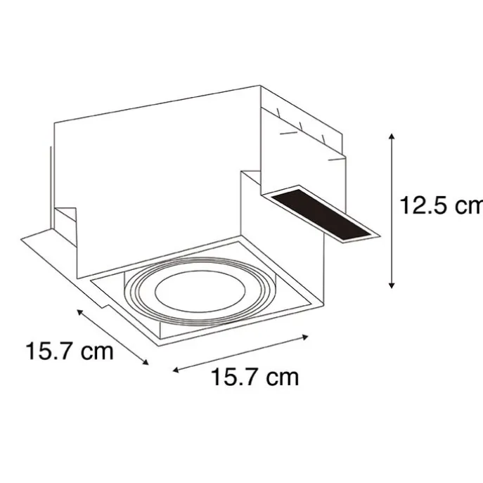 Een tijdloze musthave in huis, deze Oneon inbouwspot. Je haalt een stijlvol en luxueus design in huis. Hij heeft een lengte en breedte van 15,6 cm. De inbouwmaten van deze spot: diepte 12,5 cm, lengte en breedte 15,7 cm.Het armatuur is trimless. Dit houdt in dat er geen buitenrand om het armatuur zit en je dit armatuur dus perfect en randloos kunt verwerken in je gyproc plafond of stucplafond. Het armatuur is volledig verzonken in het plafond, waardoor de verlichting strak en mooi doorloopt.Even opletten bij deze Oneon spot: in de plafondspot past een GU10 AR111 lichtbron van max. 50 Watt. Zorg er dus voor dat je deze nog apart bij besteld, deze is niet meegeleverd. Je kan de spot tevens dimmen met een externe dimmer. Zorg voor de perfecte basisverlichting in huis met onze zwarte Oneon spot.