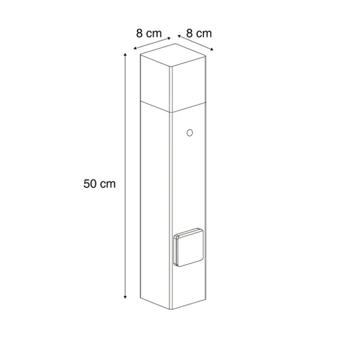 | Afmetingen algemeen | Hoogte 50 cm – lengte 8 cm – breedte 8 cm |