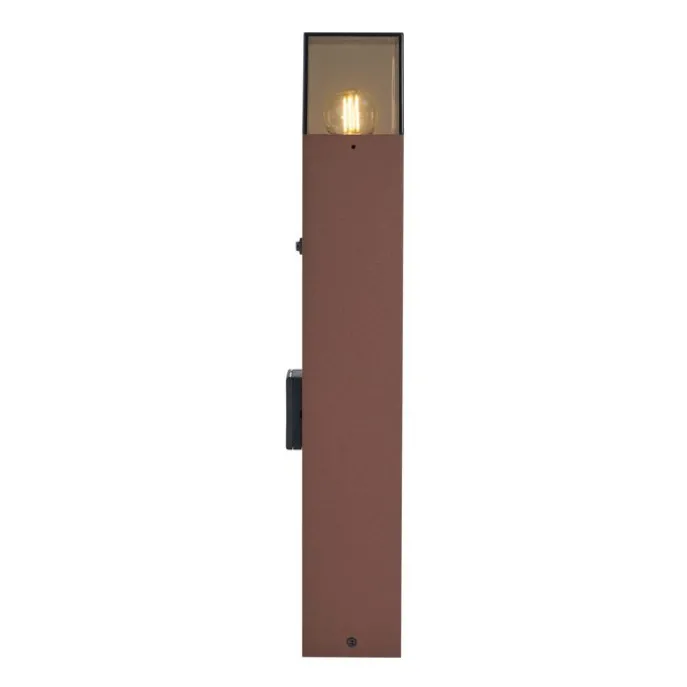 Industrieel buiten paaltje roestbruin met smoke glas 50cm met schemersensor – Denmark