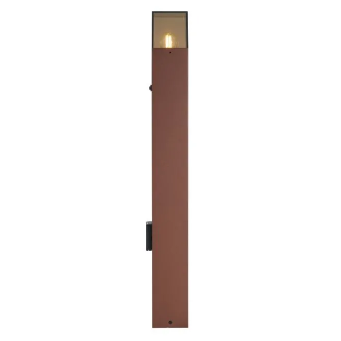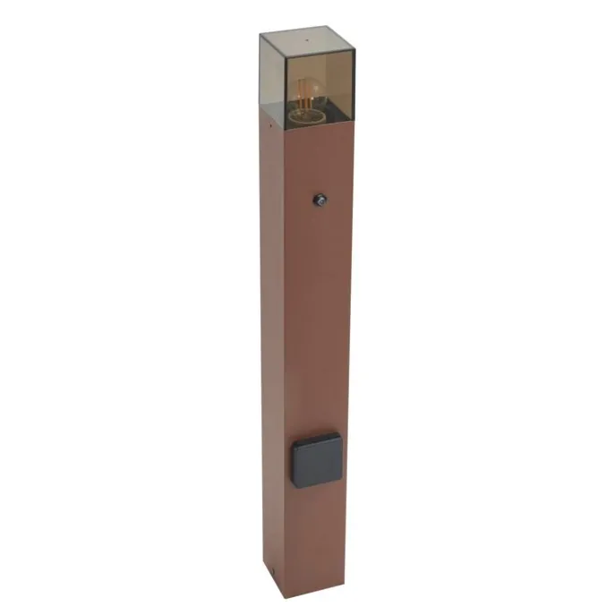 Industrieel buiten paaltje roestbruin met smoke glas 70cm met schemersensor IP44 – Denmark