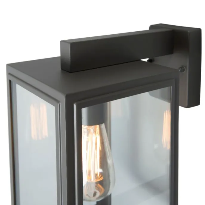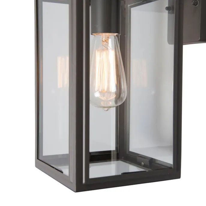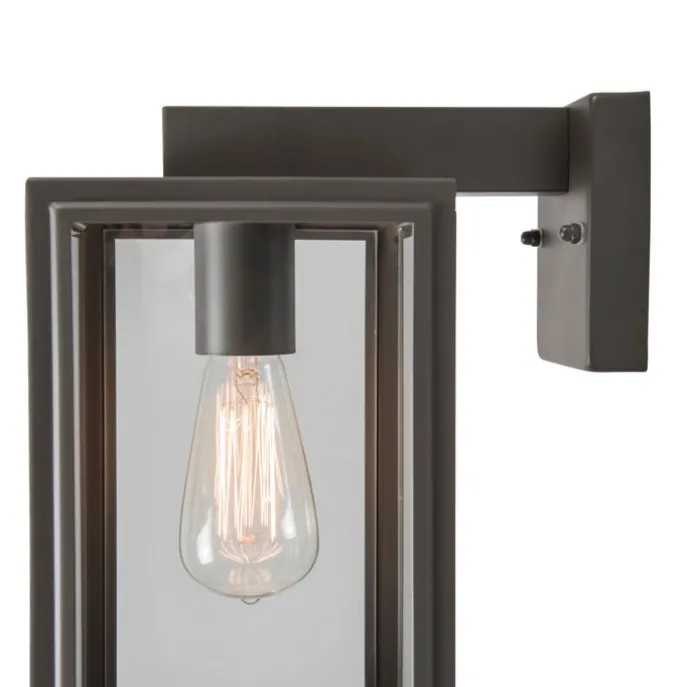 Deze industriële Sutton down donker grijze wandlamp bestaat uit een vierkant frame voorzien van glazen panelen aan de zijkanten. Hierdoor komt er een mooi strijkeffect op de buitenmuur. Daarom is het belangrijk dat je kiest voor een bijzondere lichtbron, omdat deze zichtbaar is! Door een lichtbron passend in een E27 fitting (max. 100 Watt) erbij te bestellen maak je deze wandlamp helemaal af. De Sutton down heeft een hoogte van 32,5 cm en een lengte van 17 cm. De diepte van de lamp is 25,5 cm. De lamp is tevens dimbaar met een externe dimmer (dimmer niet inbegrepen), voor een extra gezellige sfeer in de avond! Hij is gemaakt van RVS en beschikt over een IP-waarde van IP44 waardoor hij perfect bestendig is tegen regen! Een echte meerwaarde aan jouw voor- of achterdeur.
