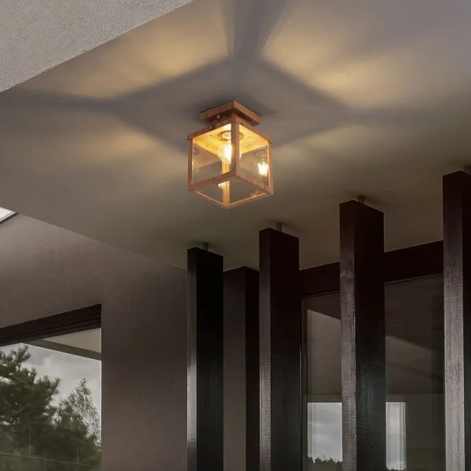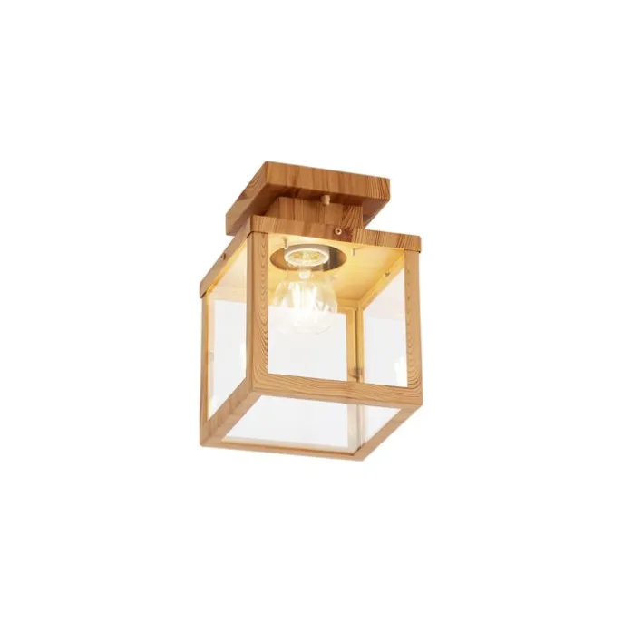 Industriële buitenplafondlamp hout met helder glas – Rotterdam