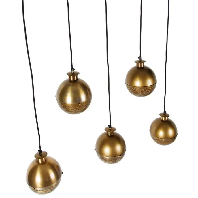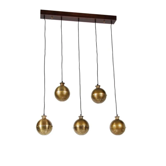 Industriële hanglamp brons met hout 5-lichts – Haicha