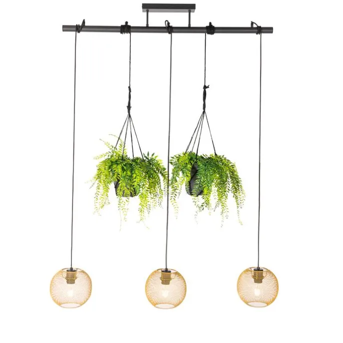 Een lamp waar je ook nog eens planten in kan hangen? Is dat even ideaal. Flor heeft plek voor twee van je groene vrienden. De gouden industriële hanglamp heeft een diepte van 20 cm, een hoogte van 166 cm en een lengte 100 cm. De montageplaat heeft een hoogte 2,5 cm, een lengte van 25 cm en een breedte 8 cm. De hanglamp komt inclusief drie lampenkappen en deze hebben elk een diameter van 20 cm en een hoogte van 17 cm. De plantenpotjes hebben elk een diameter van 17 cm. Vergeet niet om nog drie lichtbronnen met E27 fitting (max. 40 watt) er los bij te bestellen. De lamp is dimbaar (dimmer niet inbegrepen). Groen en licht in huis, wat wil je nog meer?