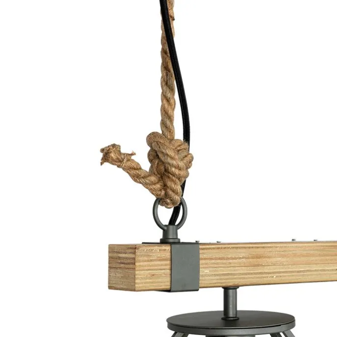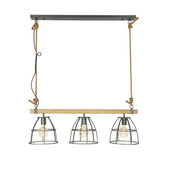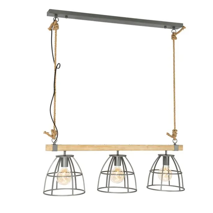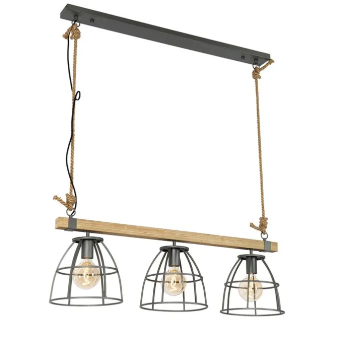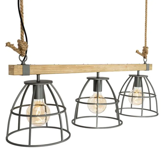 Industriële hanglamp hout met donkergrijs 3-lichts – Arthur