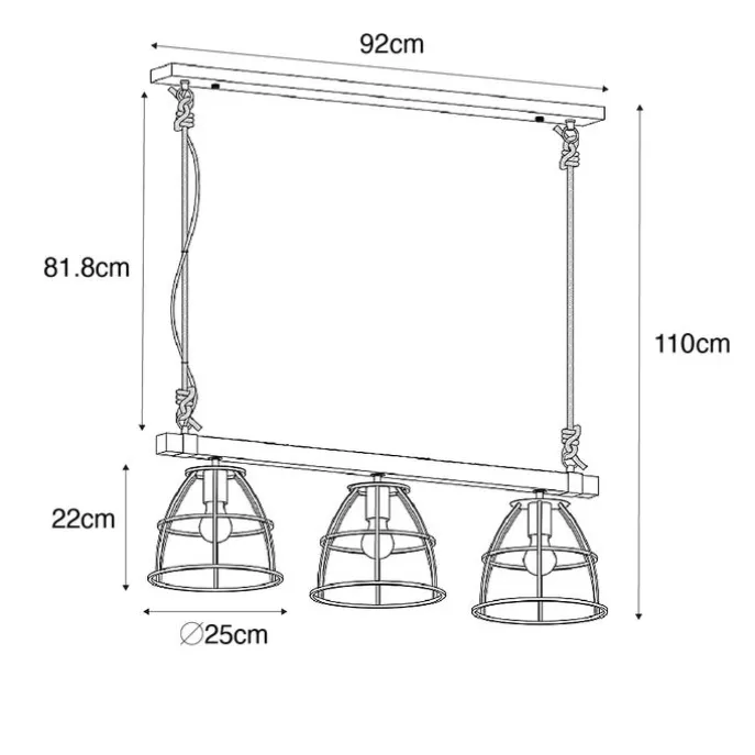 Fris jouw interieur op met hanglamp Arthur. Doordat hij gemaakt is van hout met staal en is afgewerkt in het bruin met donkergrijs, is het een echte must-have voor een industrieel interieur. De 3 lichtpunten zorgen voor de perfecte verlichting. Arthur heeft een lengte van 92 cm, breedte van 25 cm en een hoogte van 110 cm. Zorg dat je drie lichtbronnen met E27 fitting erbij besteld om de lamp compleet te maken. Ga voor extra sfeer in huis door de hanglamp te dimmen. Arthur is dimbaar (dimmer niet inbegrepen). Met Arthur zit je altijd goed: deze hanglamp wil je toch in huis hebben?