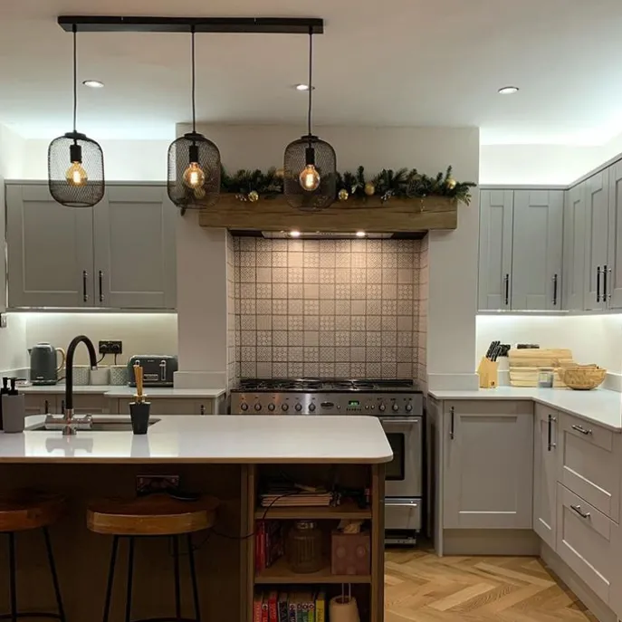 Bliss Mesh is een opvallende industriële hanglamp. Doordat hij is afgewerkt met open kappen, creëer je een mooi lichteffect op de muren. De kappen hebben ieder een diameter van 20 cm en een hoogte van 27 cm. De lamp heeft een volledige lengte van 110 cm en een breedte van 20 cm. Hij is verstelbaar in hoogte: maximaal 150 cm en minimaal 60 cm. Dat is super fijn om de hoogte boven je eettafel te bepalen. Ook kan hij zo op zijn maximale hoogte als eyecatcher fungeren in de hal!Je maakt de Bliss Mesh compleet met 3 lichtbronnen met ieder een E27 fitting (max. 40 Watt), deze moet je er nog los bij bestellen. Kies voor opvallende lichtbronnen, aangezien deze zichtbaar zijn in de kappen! Om extra sfeer te creëren in de ruimte kun je de lamp aansluiten op een dimmer, deze is niet inbegrepen. Een stijlvolle toevoeging? Check!