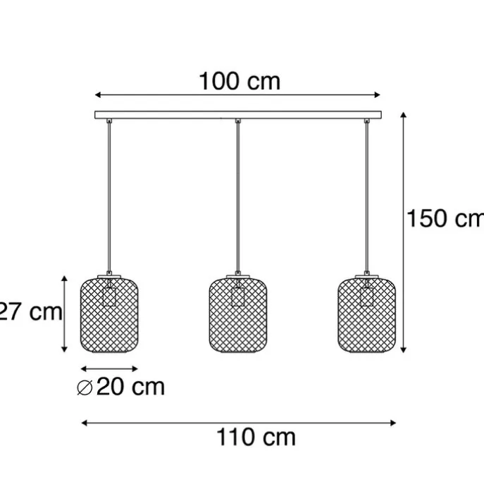 Industriële hanglamp zwart 110 cm 3-lichts – Bliss Mesh