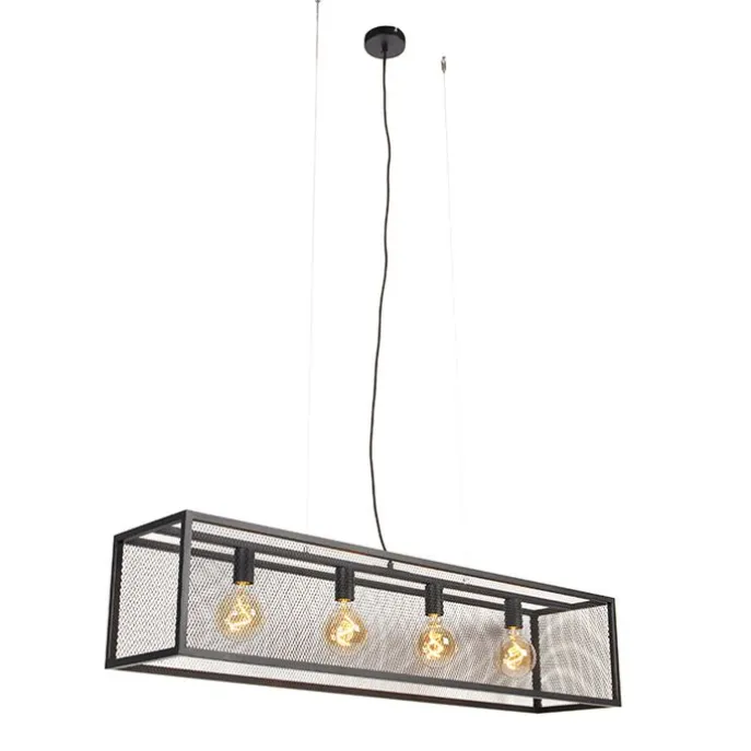 Industriële hanglamp zwart 118 cm met gaas 4-lichts – Cage