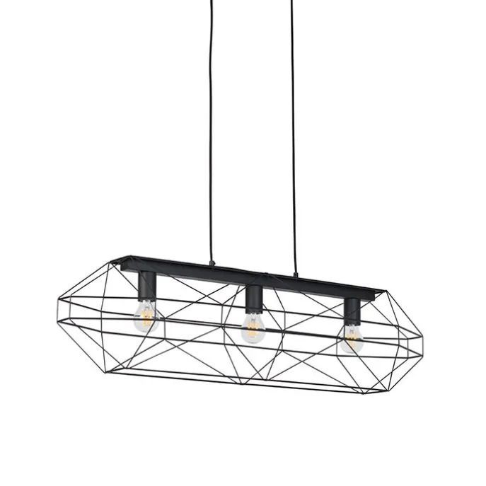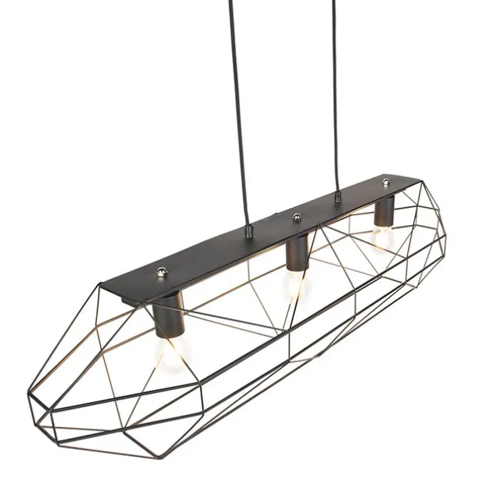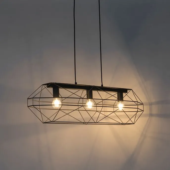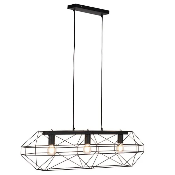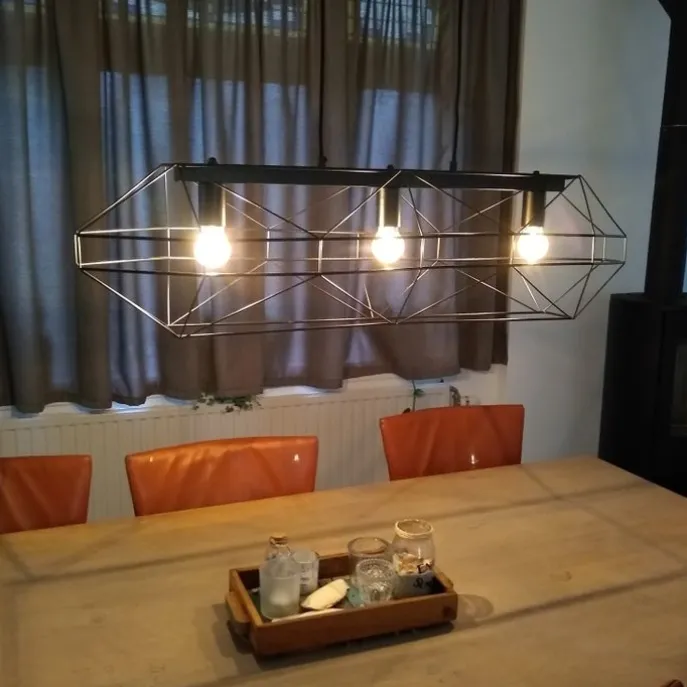 Design hanglamp met frame gemaakt van dun metaal draad in zwart gelakt. Een strak opengewerkt ontwerp wat een industriële uiterlijk en gevoel geeft. Door het fijne metaalwerk past deze Carcass ook zeker in een minimalistisch Scandinavisch of modern interieur. De mat zwarte kleur geeft de lamp een stoere finishing touch. Met drie mooie E27 filament lampen (max. 25 Watt per lichtbron) maak je het plaatje helemaal af. Door de minimalistische vormgeving is de lichtbron goed zichtbaar wat helemaal past in de huidige trends. De lamp is geschikt voor boven de tafel in bijvoorbeeld de eetkamer, kantoor, of woonkamer. De hanglamp heeft een hoogte van 115 cm, een lengte van 30 cm en een breedte van 25 cm. De montageplaat is 30 cm bij 10 cm. De totale hoogte kun je bij de installatie eventueel nog inkorten. Deze hanglamp is dimbaar om de perfecte sfeer te creëren (dimmer niet inbegrepen). Een minimalistisch design met een maximale impact!