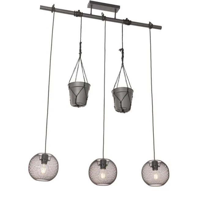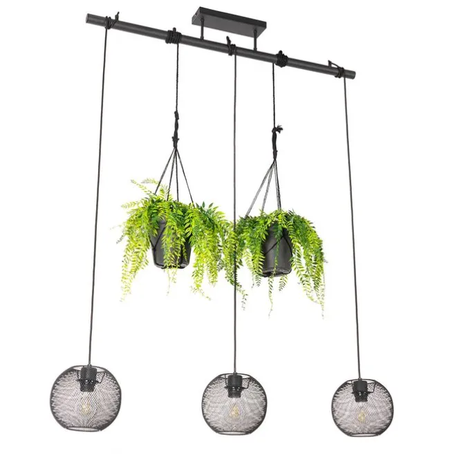 Een lamp waar je ook nog eens planten in kan hangen? Is dat even ideaal. Flor heeft plek voor twee van je groene vrienden. De zwarte industriële hanglamp heeft een diepte van 20 cm, een hoogte van 166 cm en een lengte 100 cm. De montageplaat heeft een hoogte 2,5 cm, een lengte van 25 cm en een breedte 8 cm. De hanglamp komt inclusief drie lampenkappen en deze hebben elk een diameter van 20 cm en een hoogte 17 cm. De plantenpotjes hebben elk een diameter van 17 cm. Vergeet niet om nog drie lichtbronnen met E27 fitting (max. 40 watt) er los bij te bestellen. De lamp is dimbaar (dimmer niet inbegrepen). Groen en licht in huis, wat wil je nog meer?