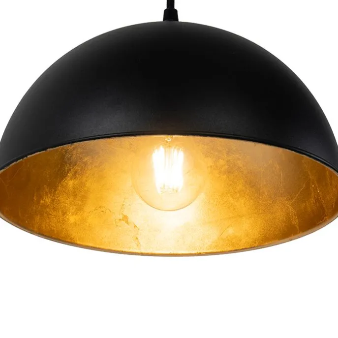 Industriële hanglamp zwart met goud 3-lichts – Magnax