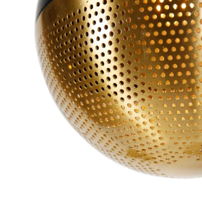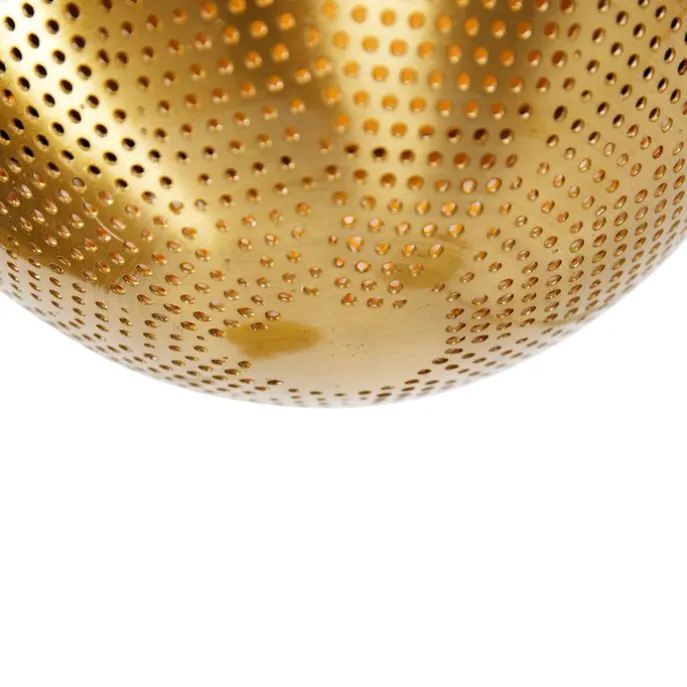 Nee, je hebt het niet te hoog in je bol. Deze bolvormige industriële hanglamp is de perfecte toevoeging aan bijvoorbeeld je eetkamer of woonkamer. Haicha heeft een diameter van 70 cm en een hoogte van 141 cm. De montageplaat heeft een diameter van 70 cm en een hoogte van 3 cm. De lamp kan gedimd worden (dimmer niet inbegrepen) en je moet zelf nog vijf lichtbronnen met E27 fitting (max. 25 watt) er los bij bestellen. De lamp is gemaakt van staal en afgewerkt in het goud/messing met zwart. Wat een plaatje!