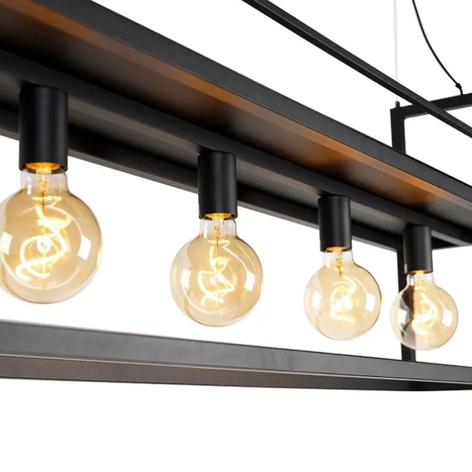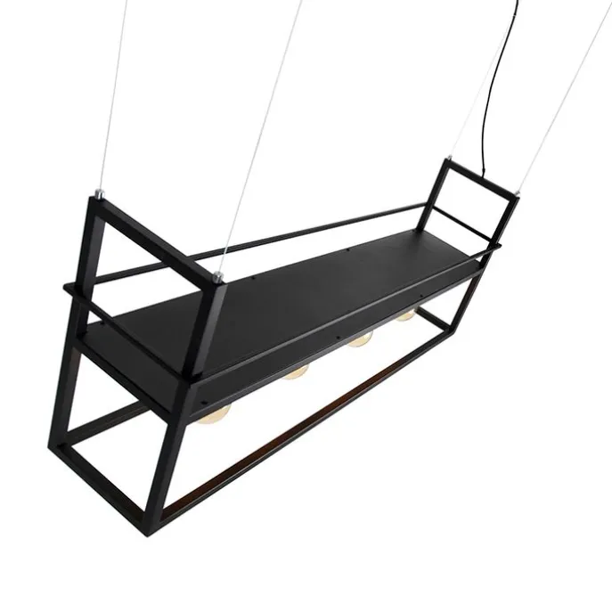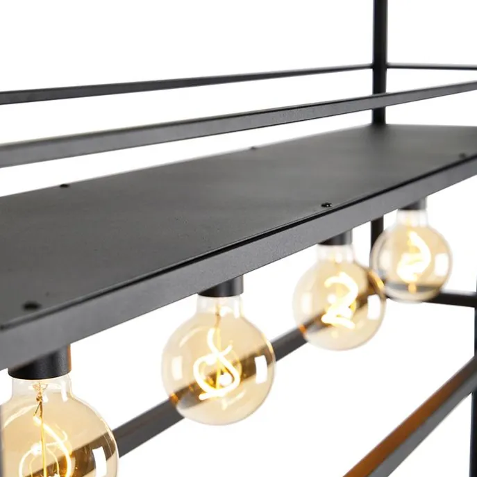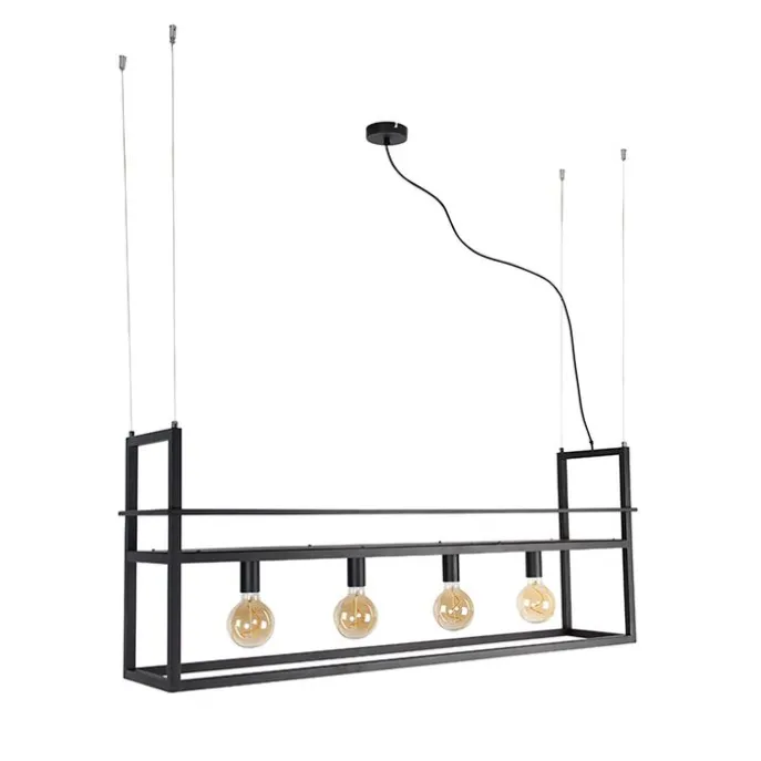 Industriële hanglamp zwart met rek large 4-lichts – Cage Rack