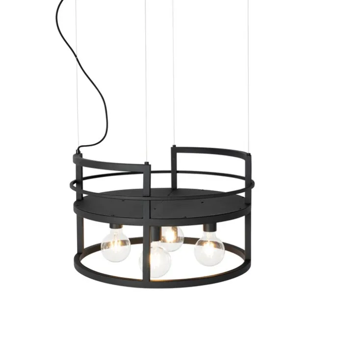 Industriële hanglamp zwart met rek rond 4-lichts – Cage Rack